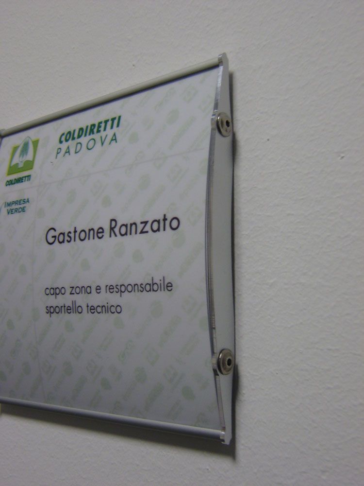 Targhe classiche dallo stile pulito o di design dal carattere più ricercato che permettono di identificare uffici o ambienti all’interno della tua azienda con molteplici forme e tipologie senza essere mai banali o scontate. Sempre all’avanguardia nelle tecniche di stampa digitale possiamo soddisfare ogni tipo di esigenza, dalla realizzazione di targhe più semplici sino alla progettazione di segnaletica aziendale più complessa.